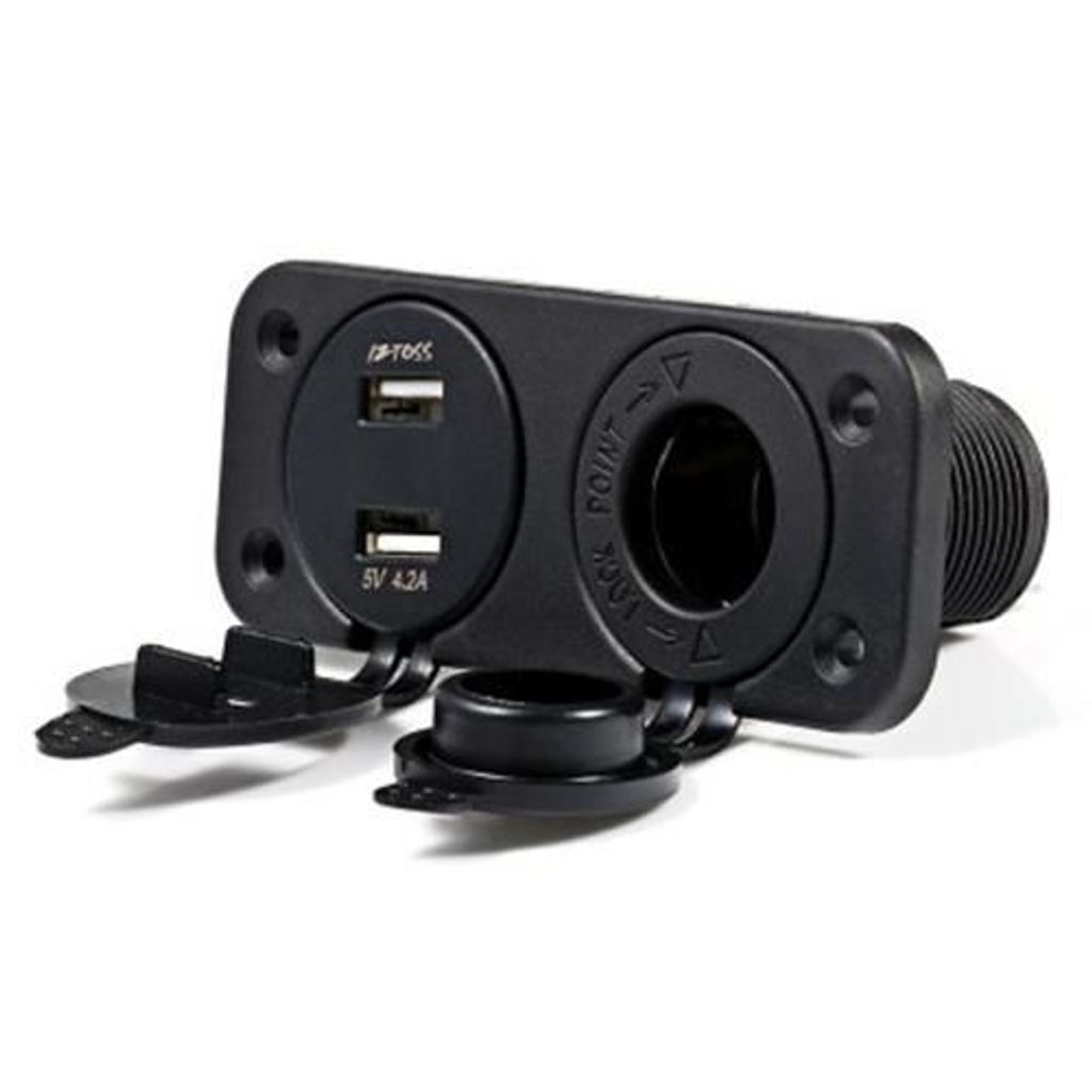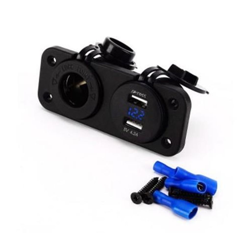 - With a dual port 5V 2.1A ( total 4.2A ) outlet to charge power requirement devices and 12V digital voltmeter
