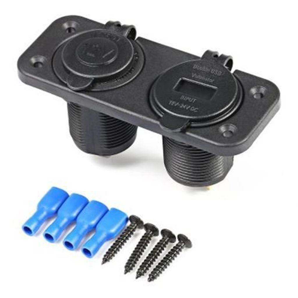 IZTOSS C931 - Z 12 - 24V DOUBLE HOLE PANEL ROUND DUAL USB VEHICLE POWER PLUG VOLTMETER DISPLAY CIGARETTE LIGHTER WATER RESISTANT MARINE SOCKET