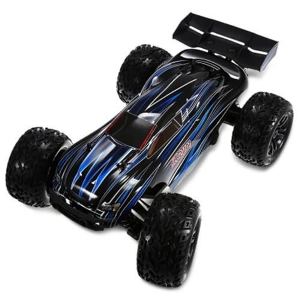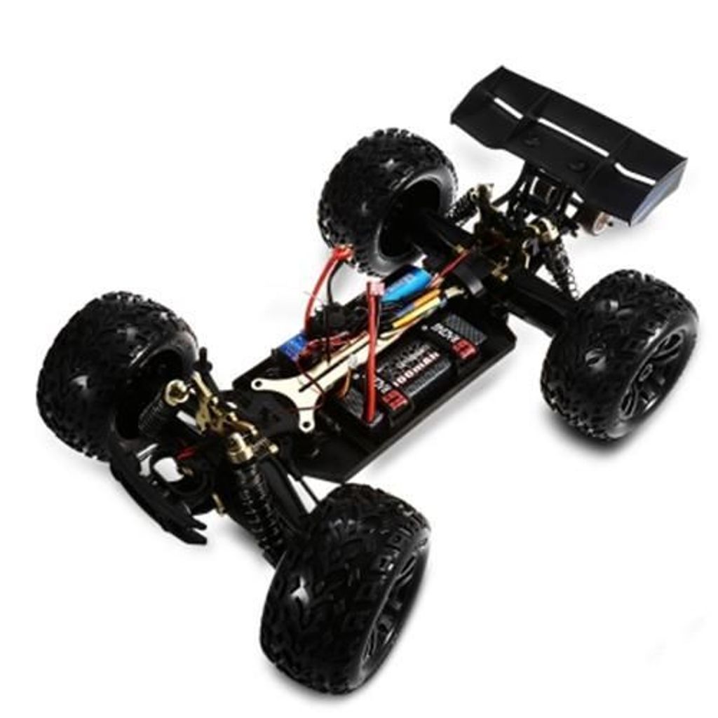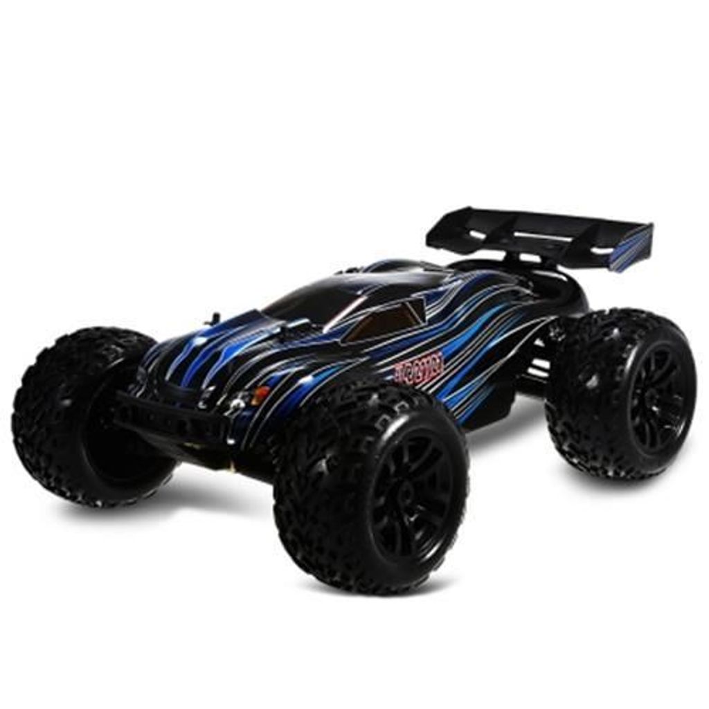 JLB Racing 21101 off-road RC racing truck is an exceptional RC vehicle armed with the powerful 3670 2500KV brushless motor and HOBBYWING 120A brushless ESC, allowing it to reach the highest speed of 80km/h without any difficulty. The enormous truggy has a strong wheelie bar that makes it easy to raise the front part of the RC vehicle while keeping in balance. The FLYSKY FS - GT2E effectively guarantees the control range of 100 - 180m.