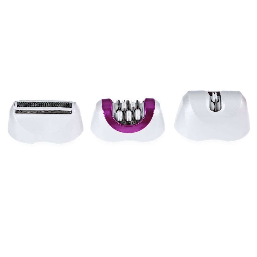 Package Content: 1 x Epilator, 1 x Power Cable, 1 x Shaving Head, 1 x Refined Epilating Head, 1 x Brush, 1 x Massager with Four Beads, 1 x Sponge Cleaner Head, 1 x Brush Cleaner Head, 1 x English Manual, 1 x Foot Callus Cotton Remover