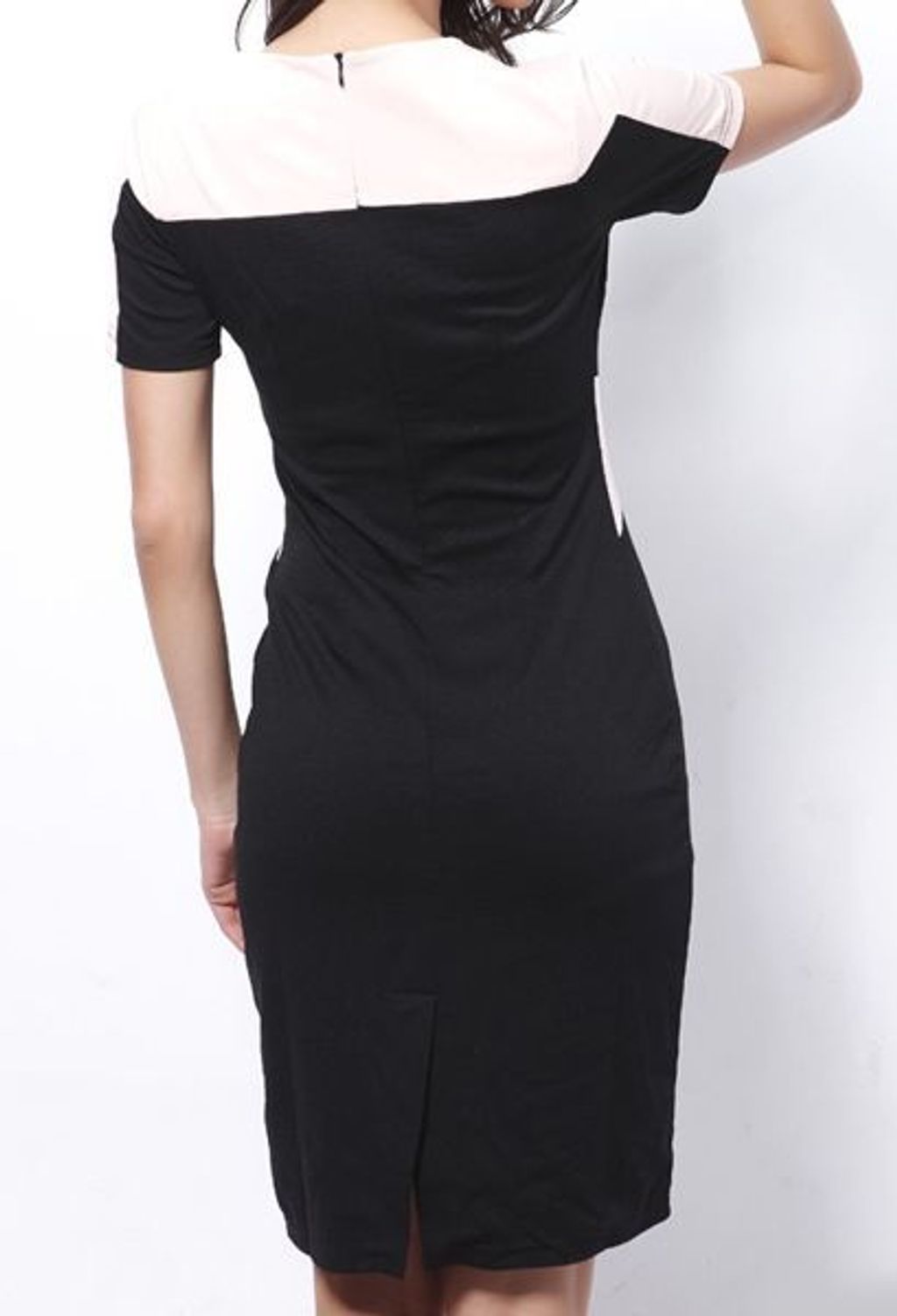 Laconic Round Neck Color Block Short Sleeve Packet Buttock Women's Dress