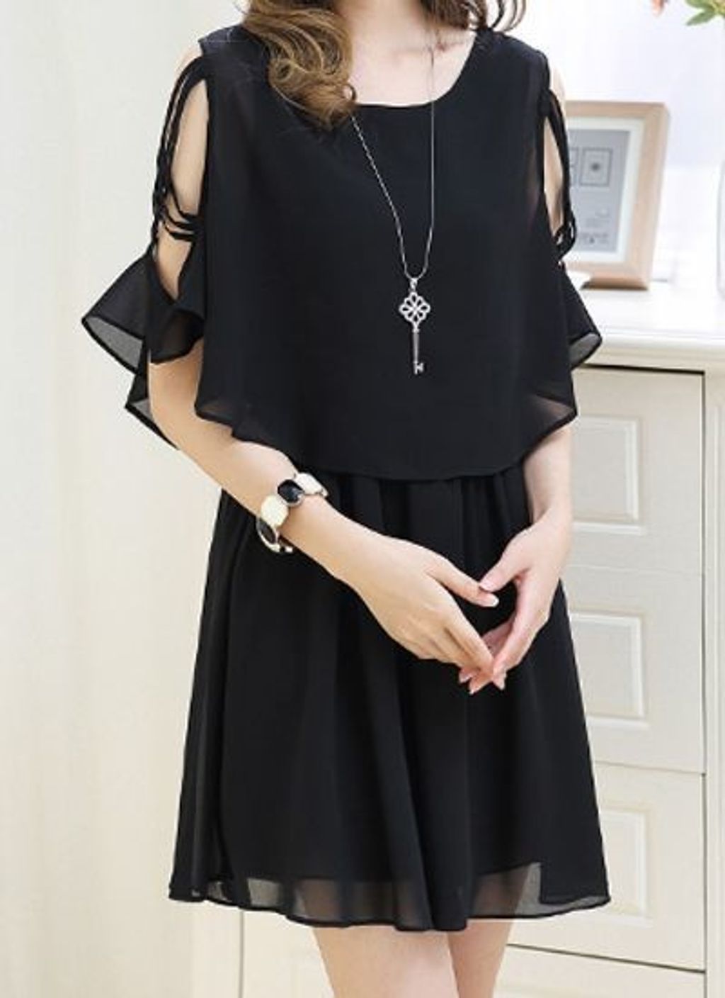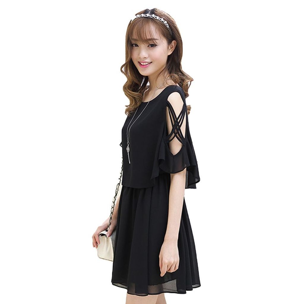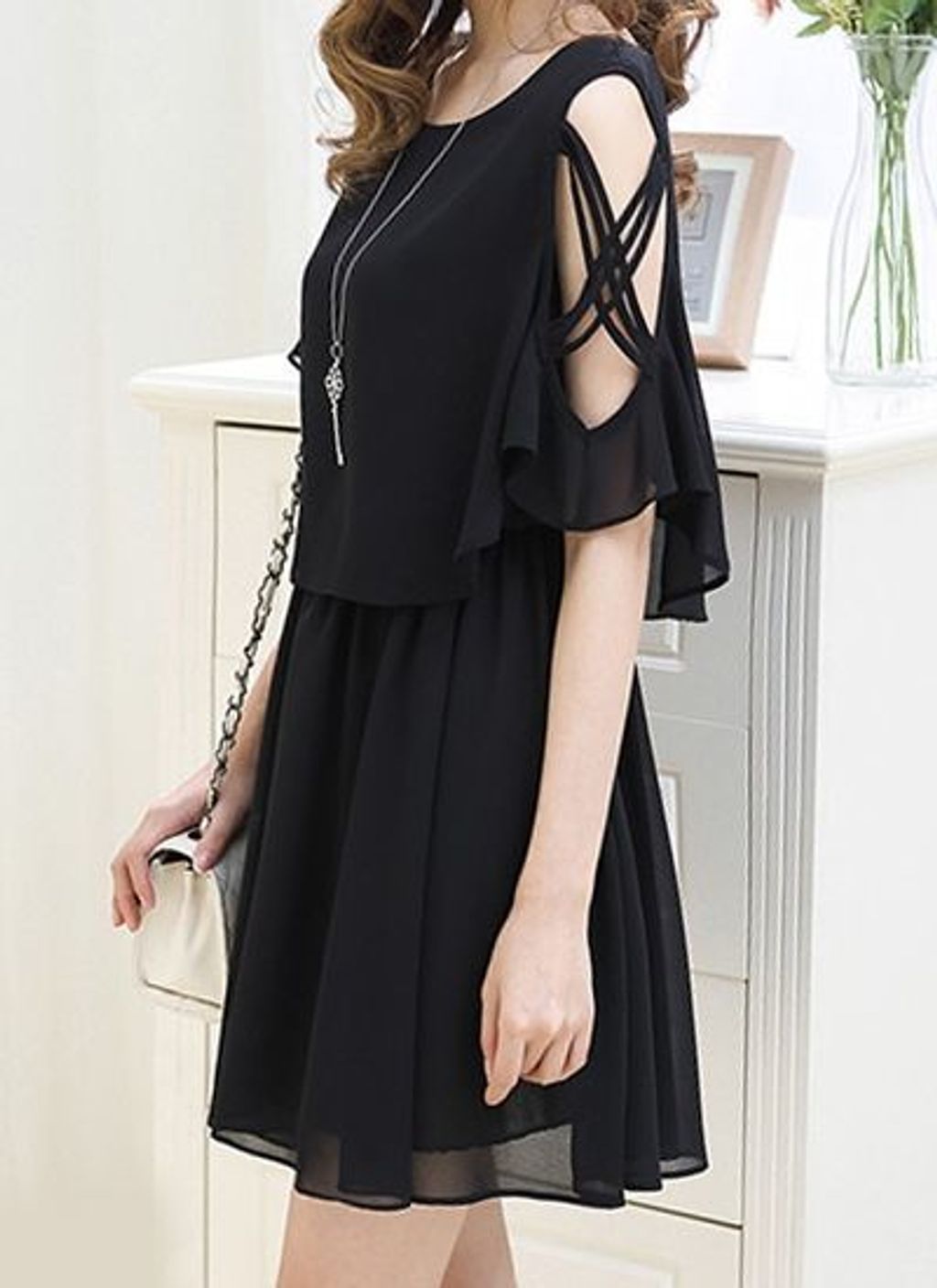 LADYLIKE SCOOP NECK HOLLOW OUT HALF SLEEVE DRESS FOR WOMEN