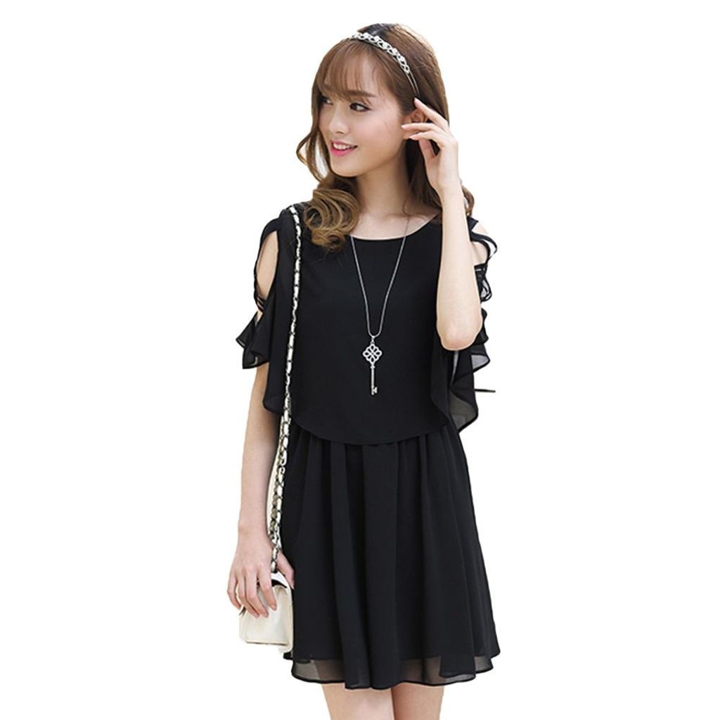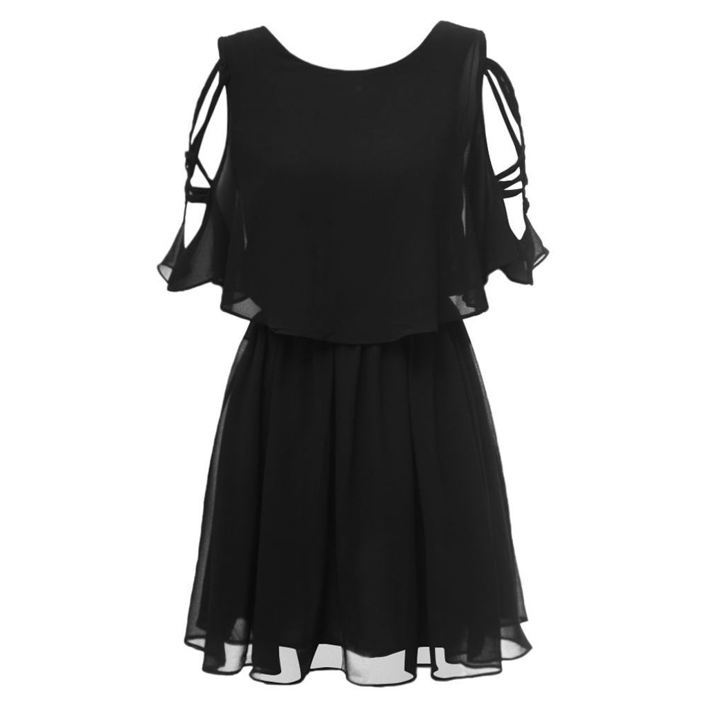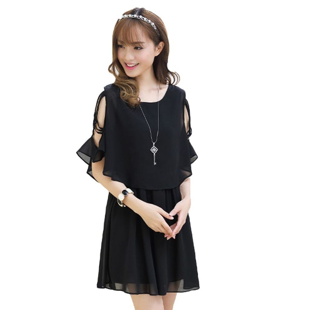 LADYLIKE SCOOP NECK HOLLOW OUT HALF SLEEVE DRESS FOR WOMEN