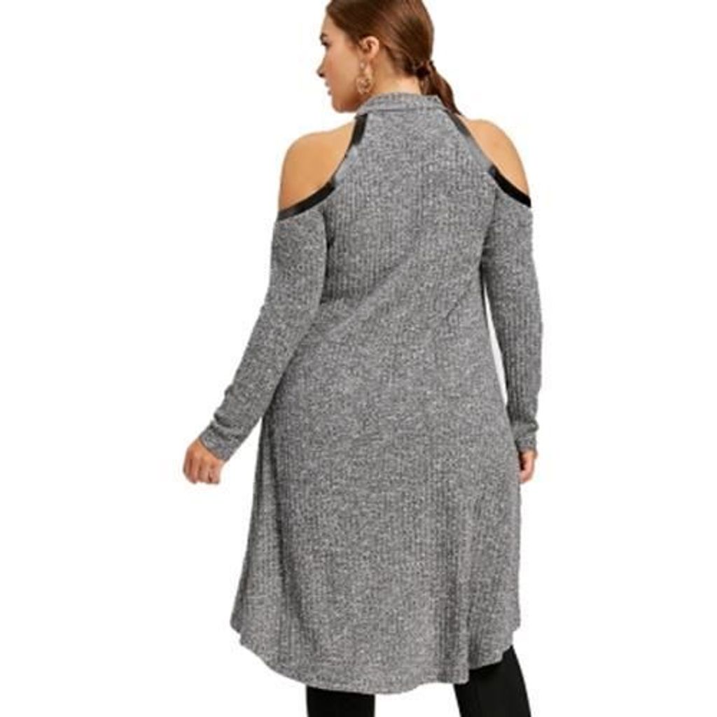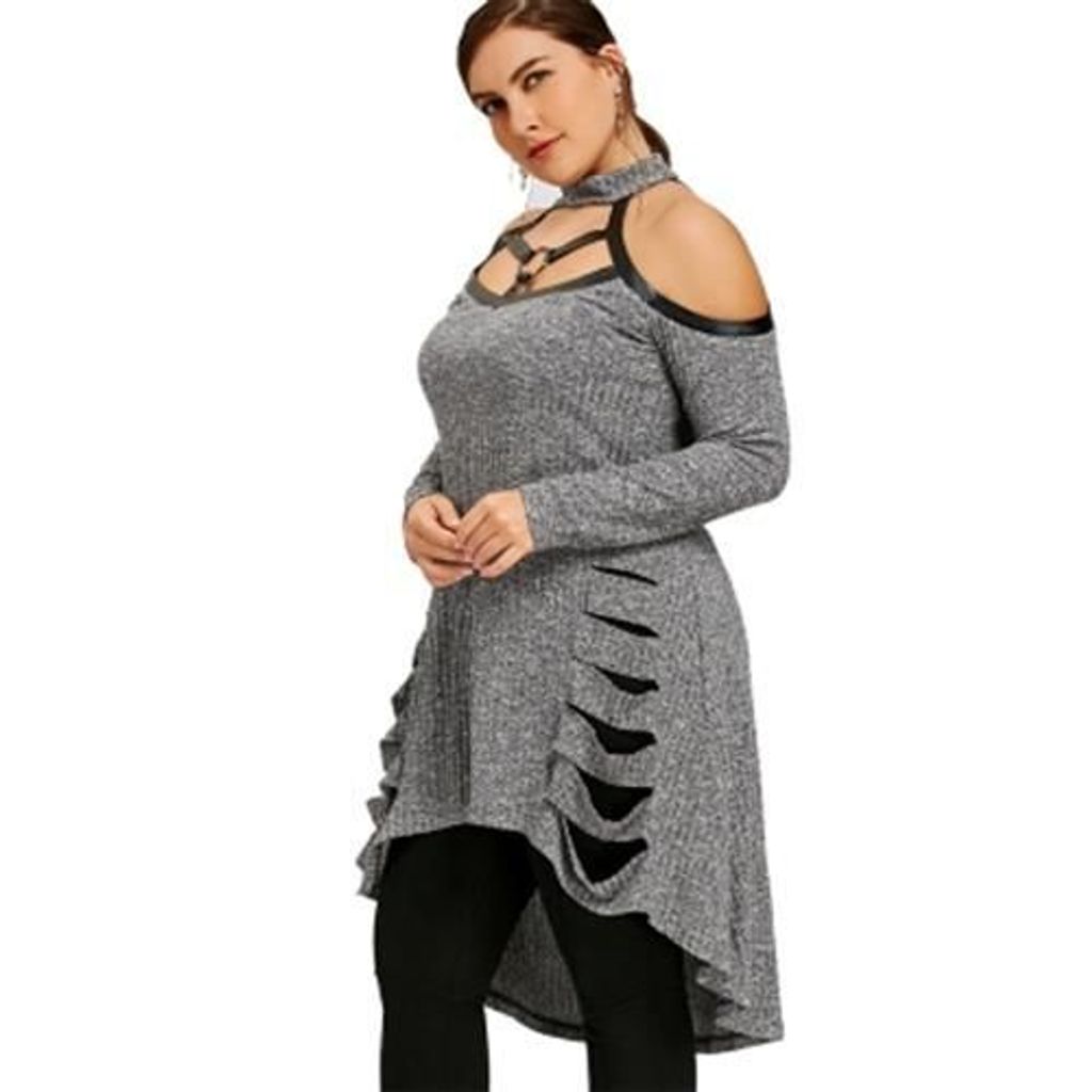 PLUS SIZE COLD SHOULDER RIPPED TUNIC TOP (GRAY)