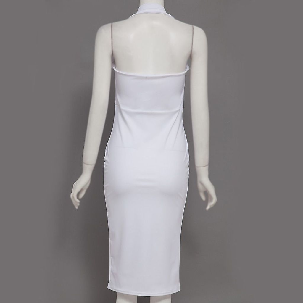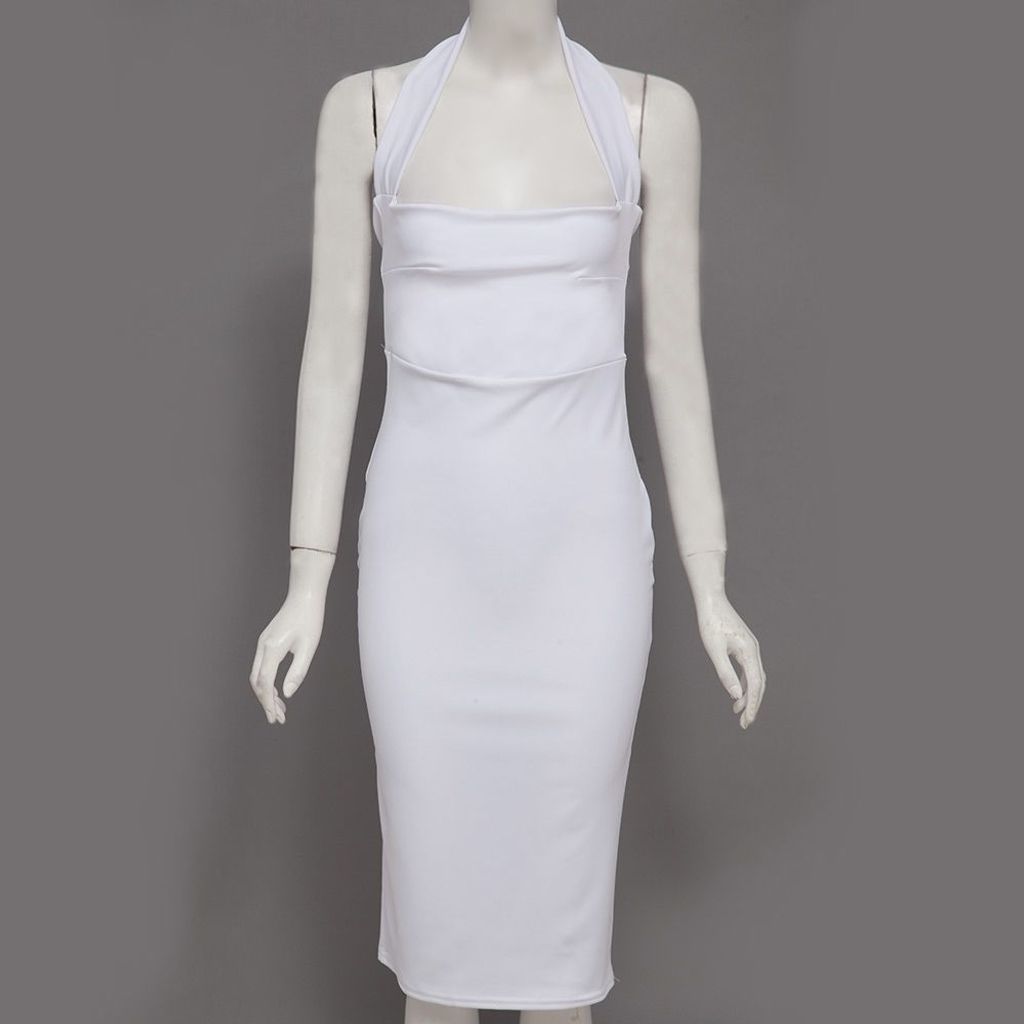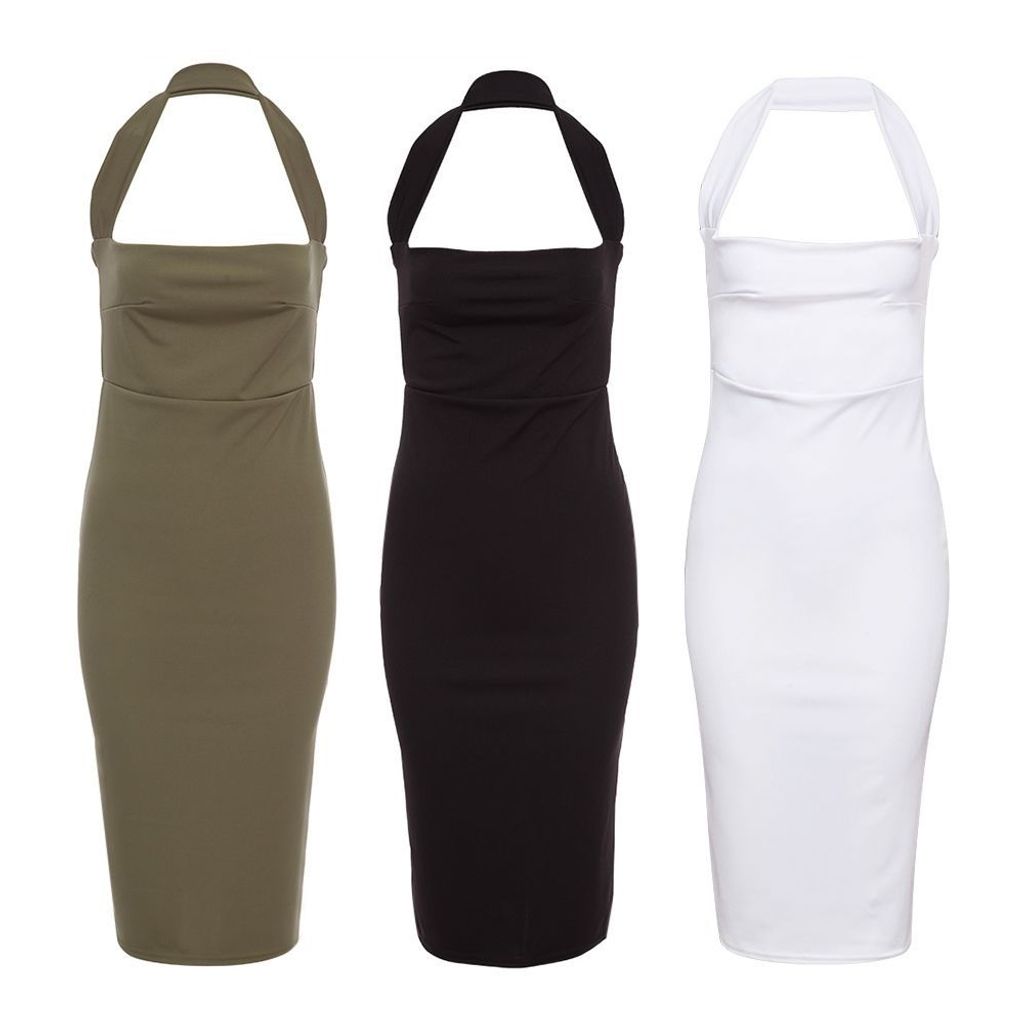 SEXY HALTER BACKLESS SKINNY SOLID COLOR MIDI DRESS FOR WOMEN