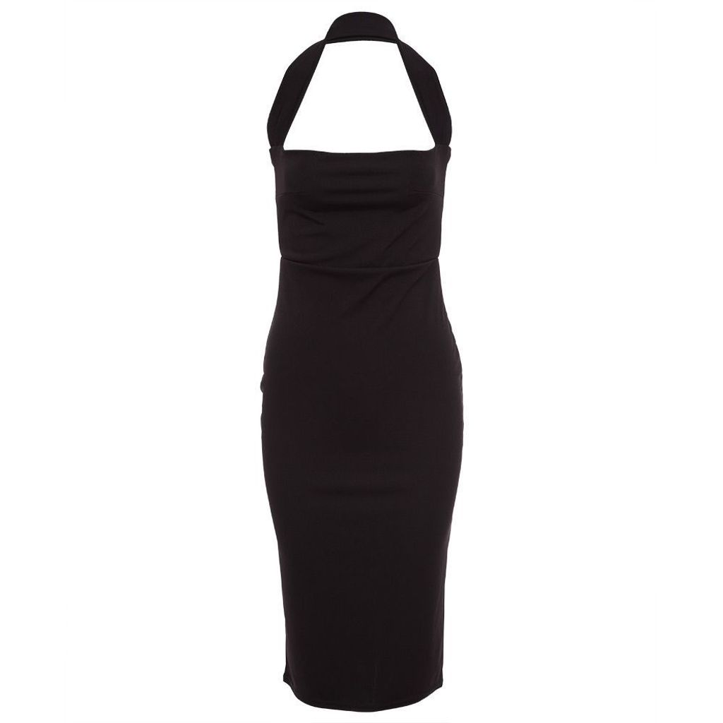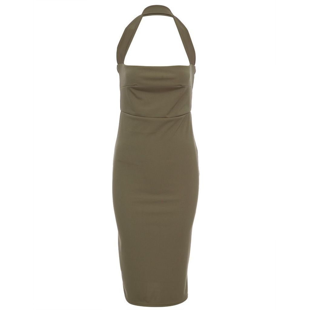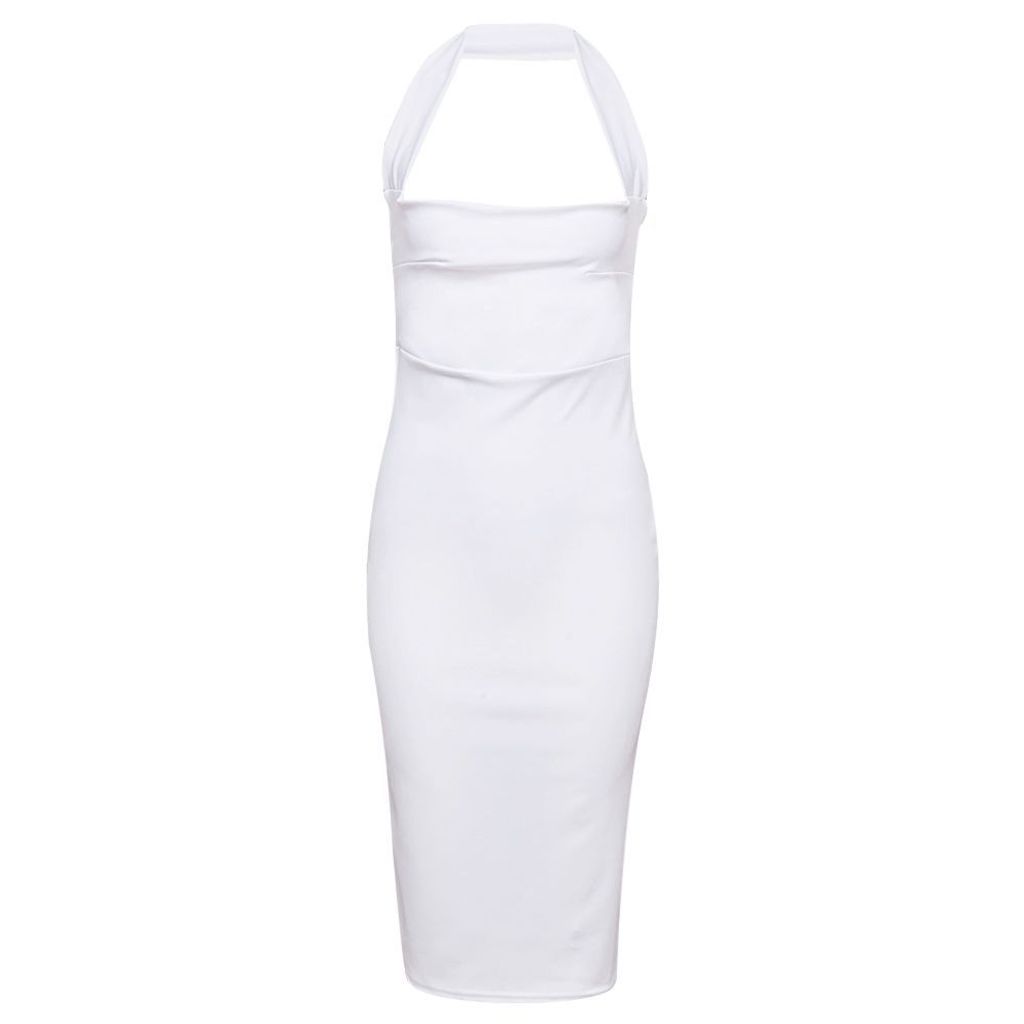 SEXY HALTER BACKLESS SKINNY SOLID COLOR MIDI DRESS FOR WOMEN