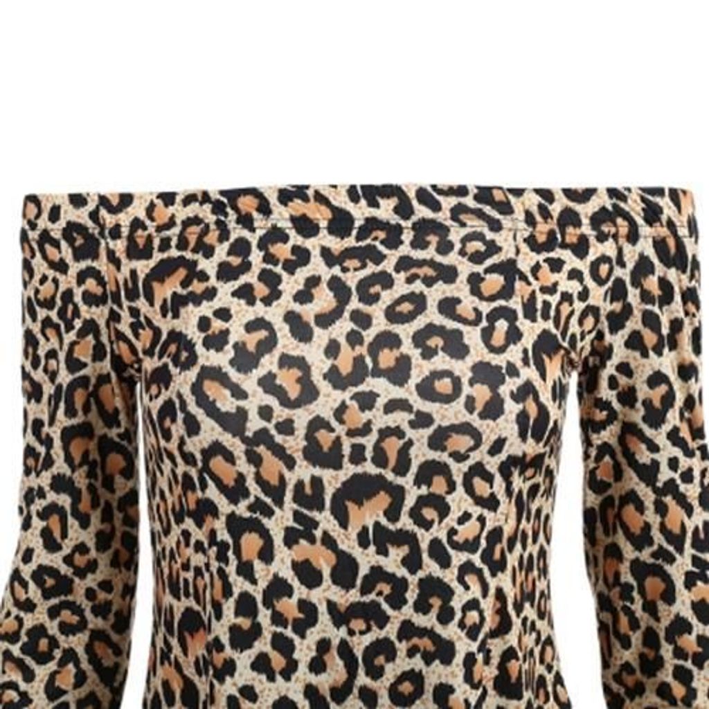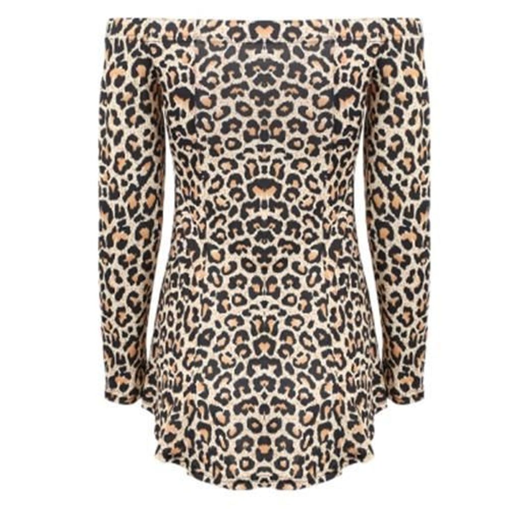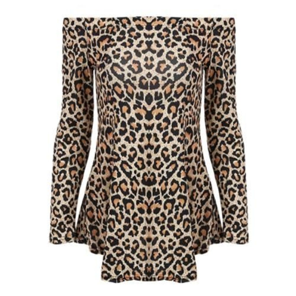 SEXY LONG SLEEVE OFF THE SHOULDER LEOPARD PRINT WOMEN DRESS (FLAXEN)