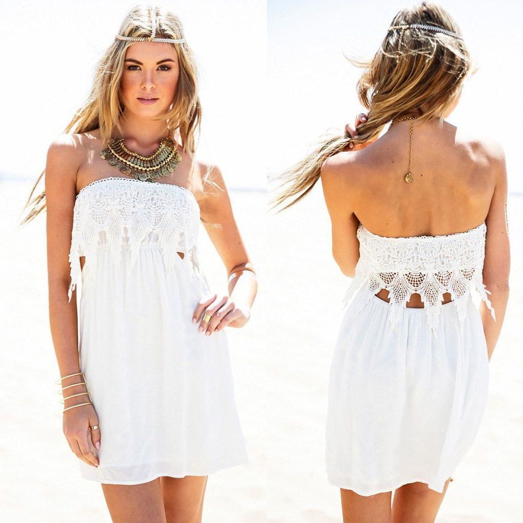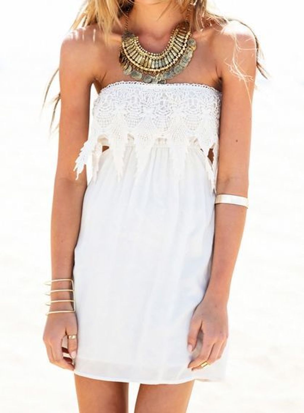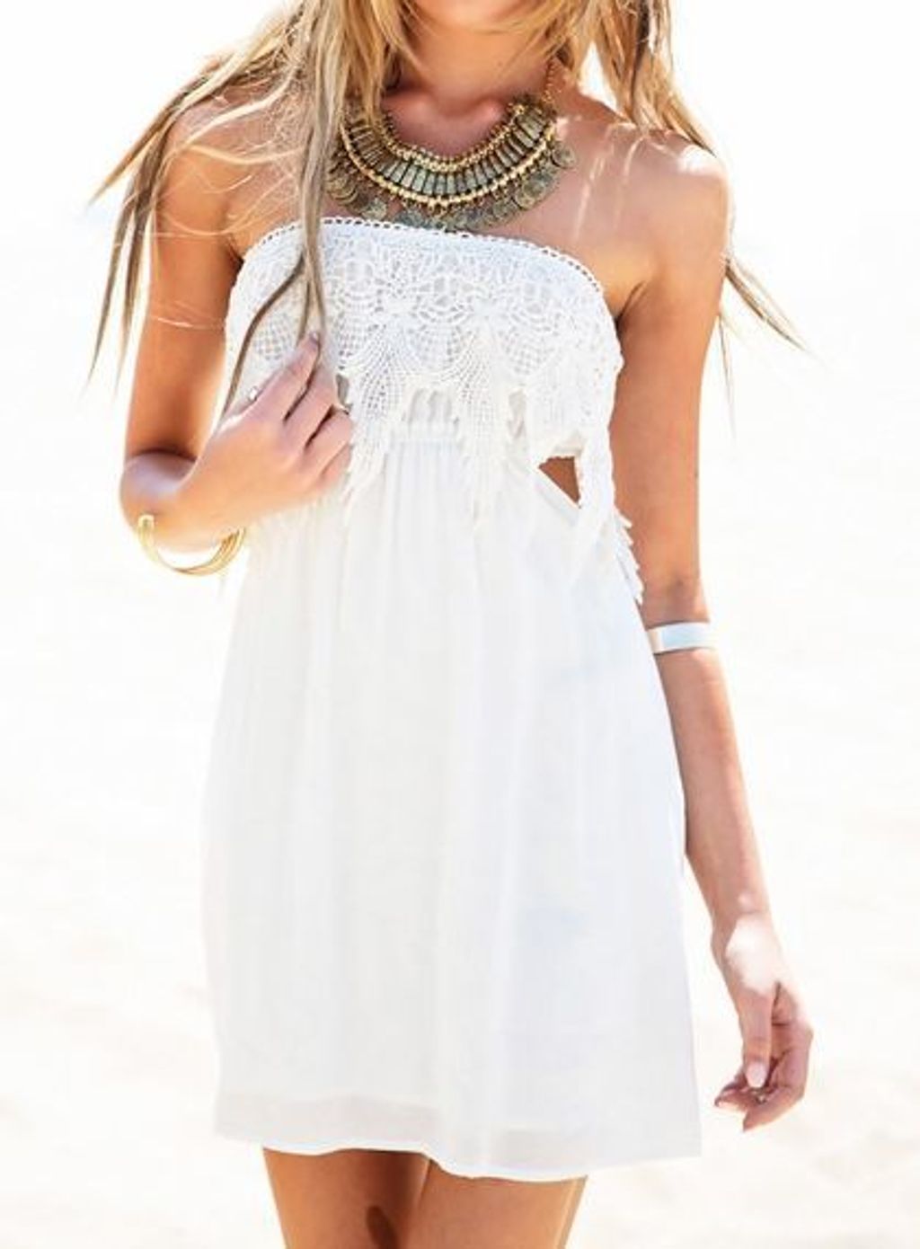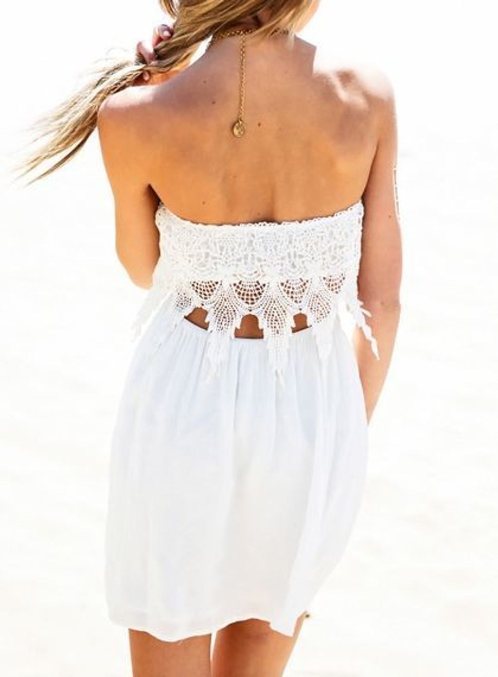 SEXY STRAPLESS SLEEVELESS SPLICED LACINESS HOLLOW OUT WOMEN'S DRESS