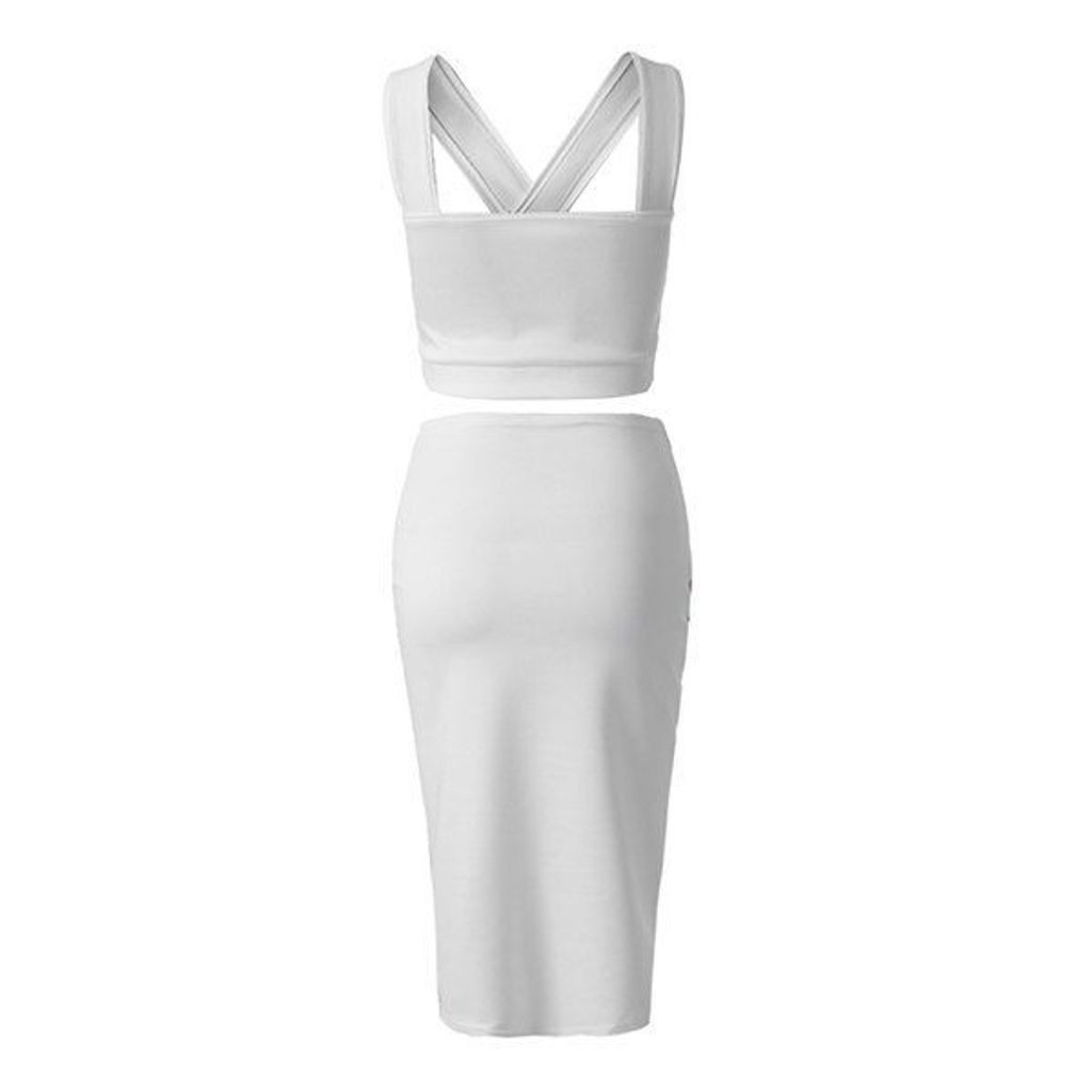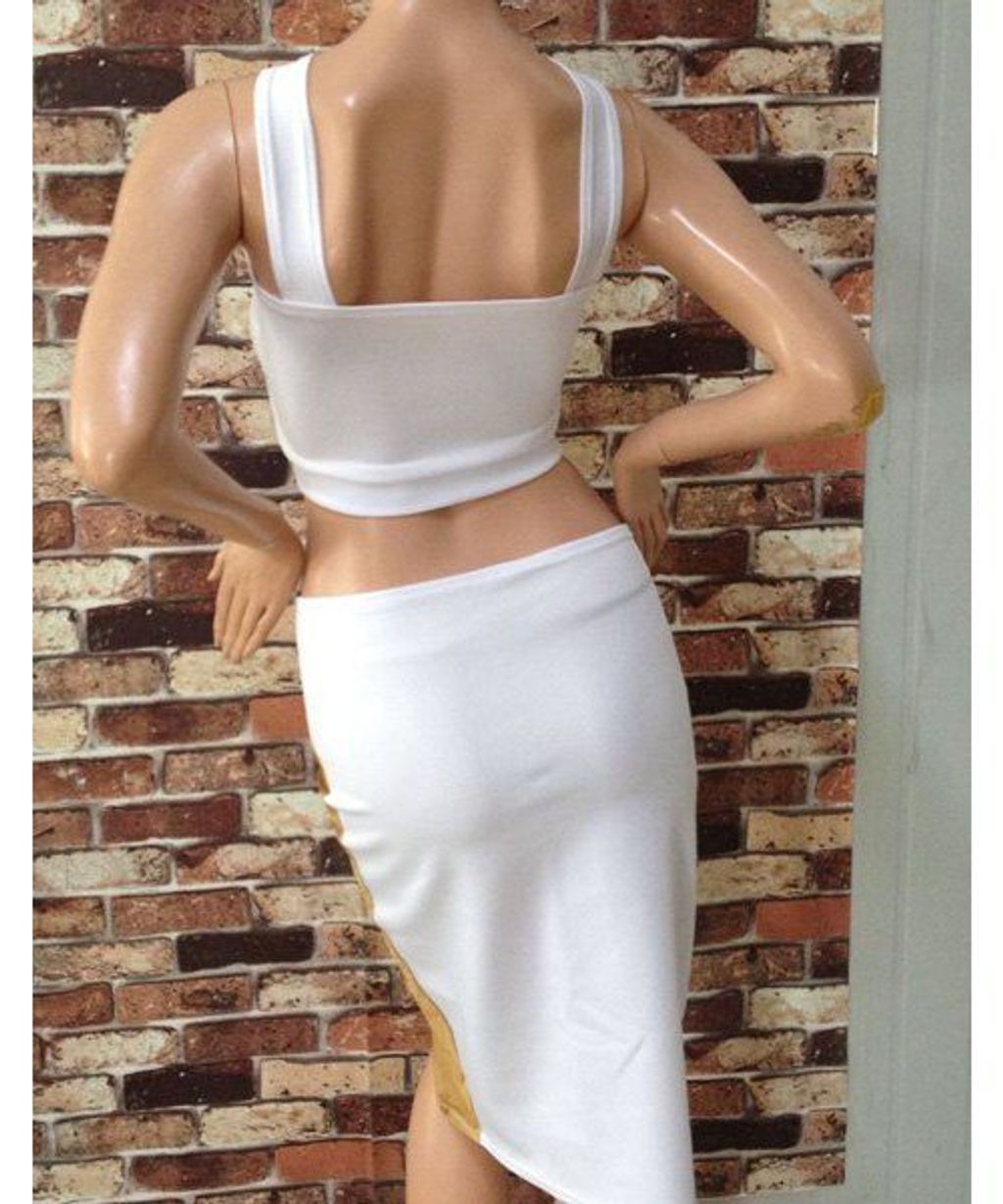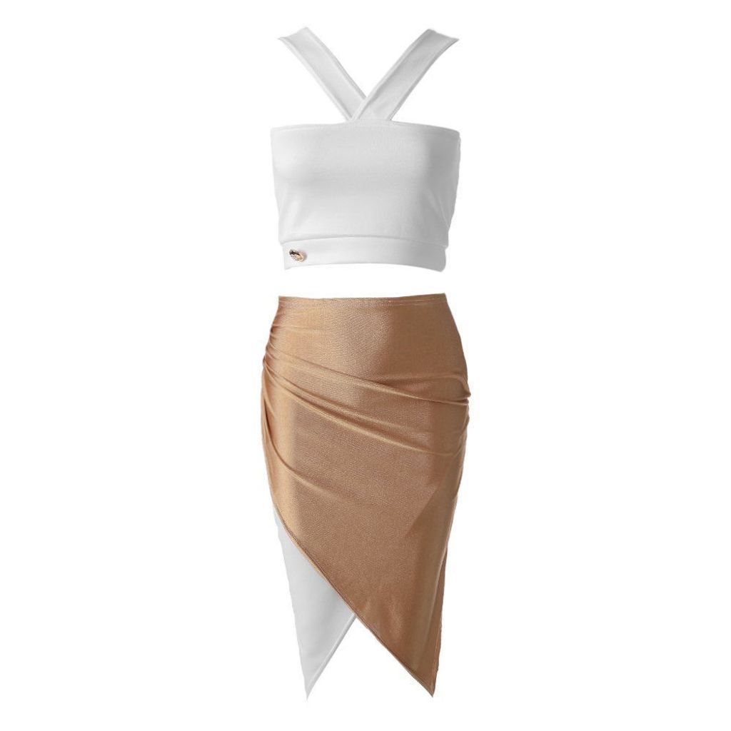 SEXY V-NECK CROP TOP + HIGH-WAISTED COLOR BLOCK SKIRT WOMEN'S TWINSET