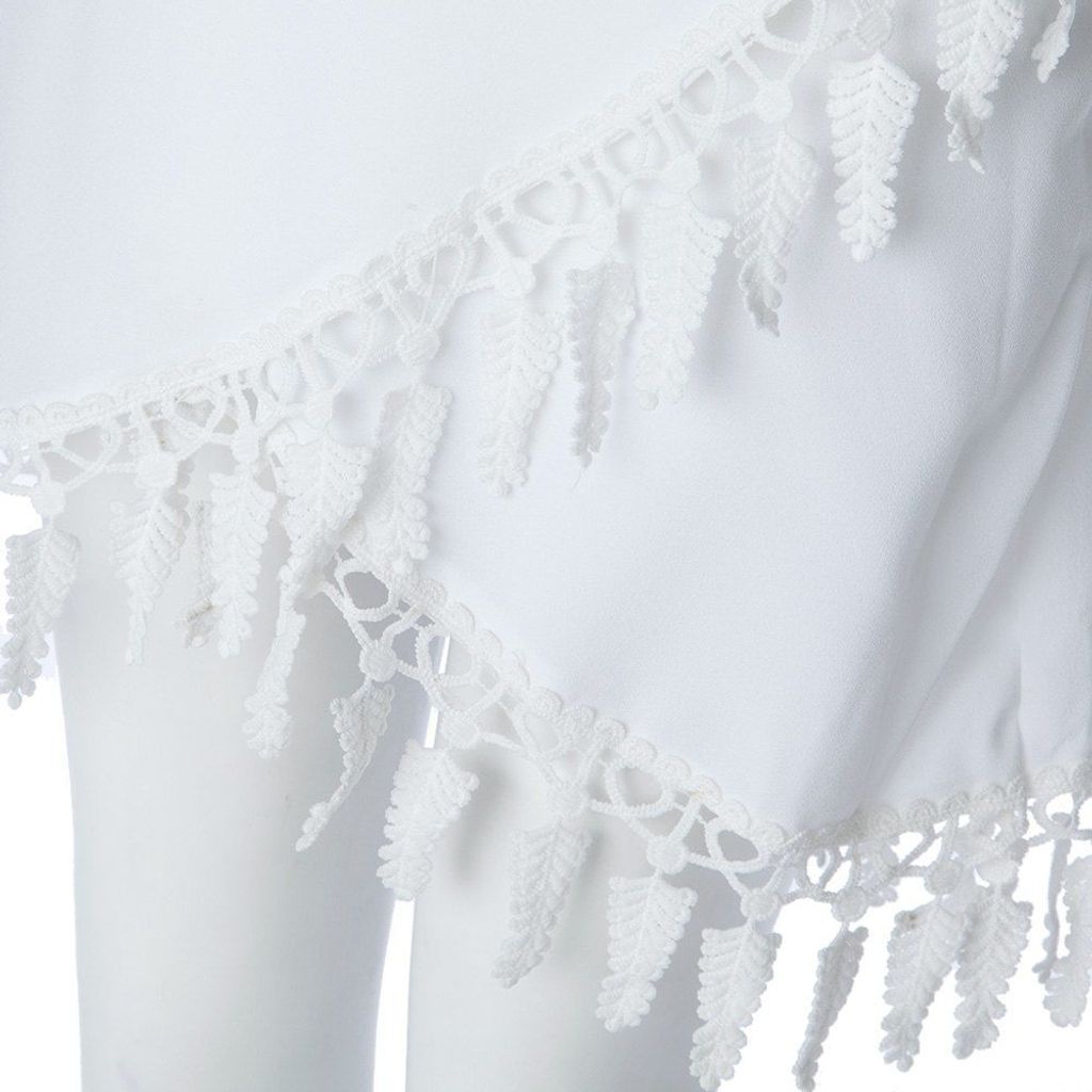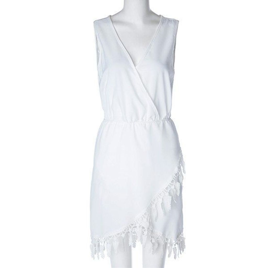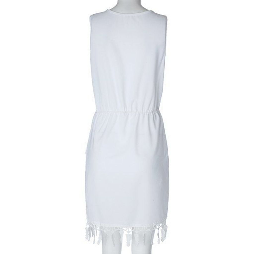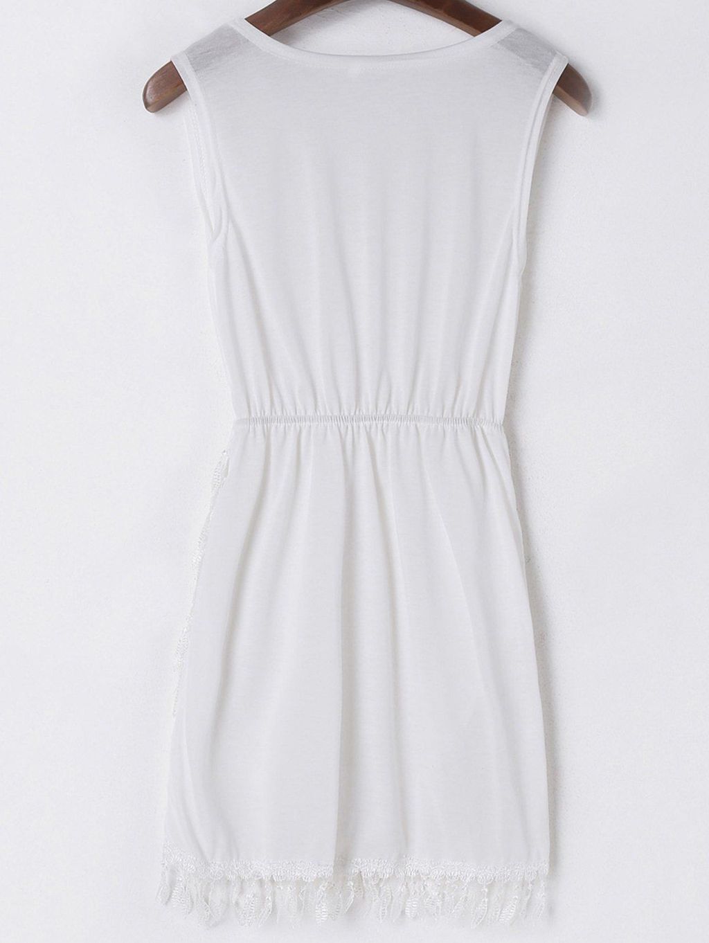 SEXY V-NECK SLEEVELESS FRINGE WHITE DRESS FOR WOMEN