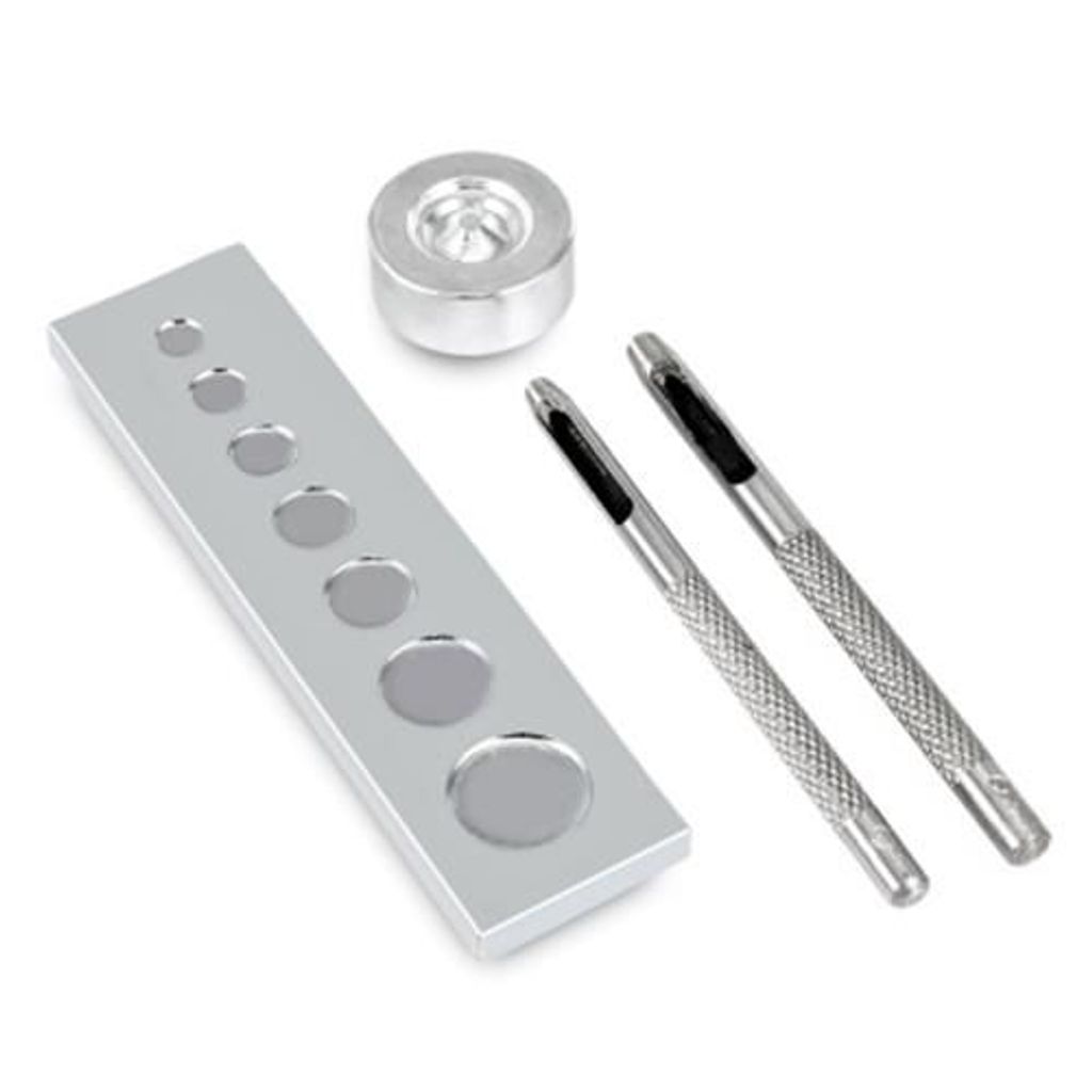 SNAP BUTTON FASTENER INSTALLATION KIT TOOL RIVET SETTER BASE SET (SILVER)