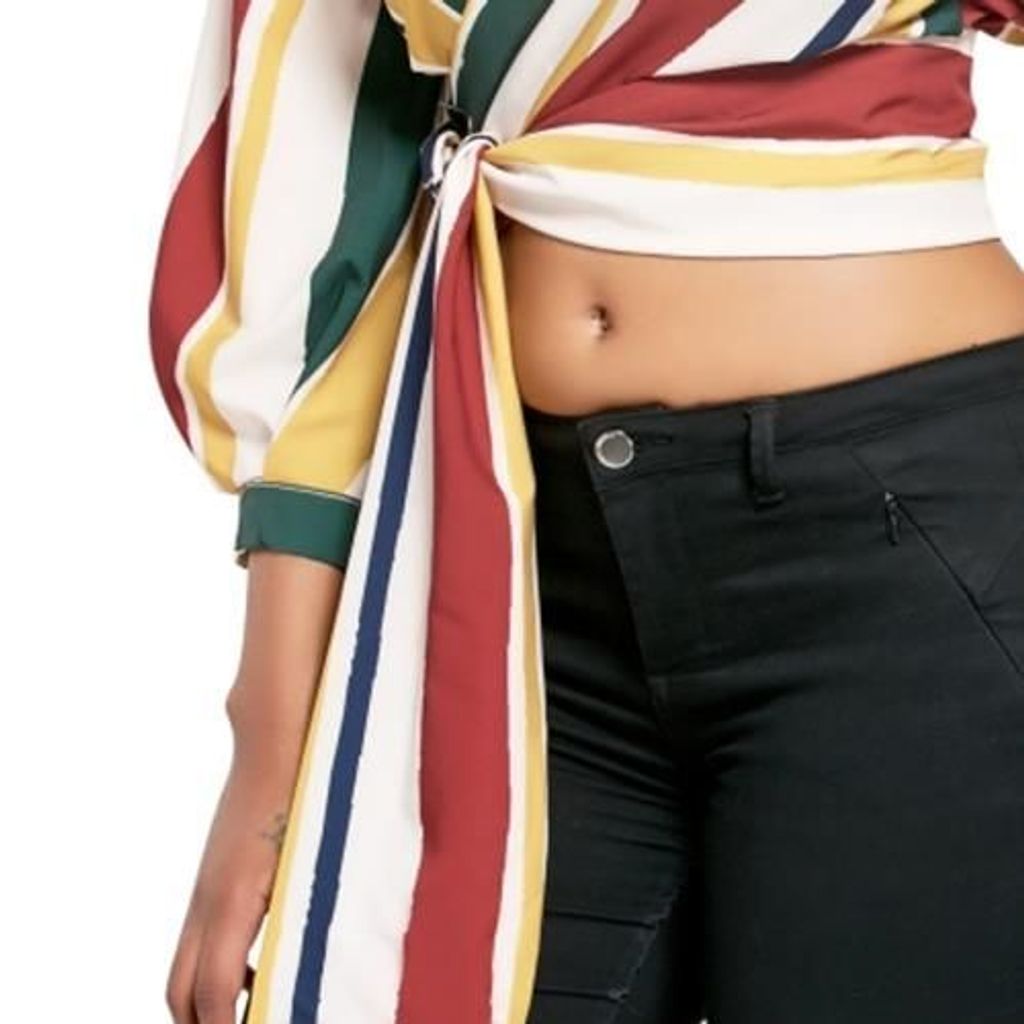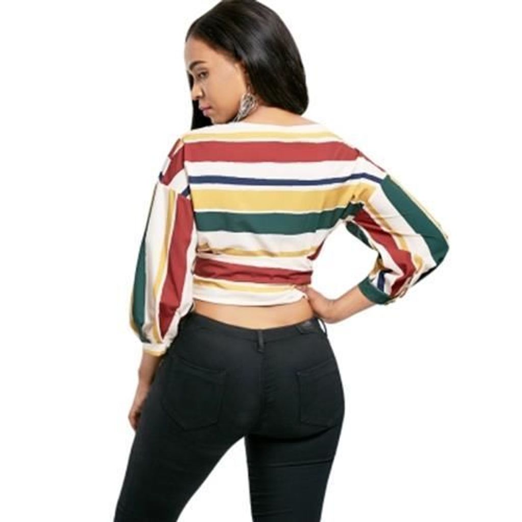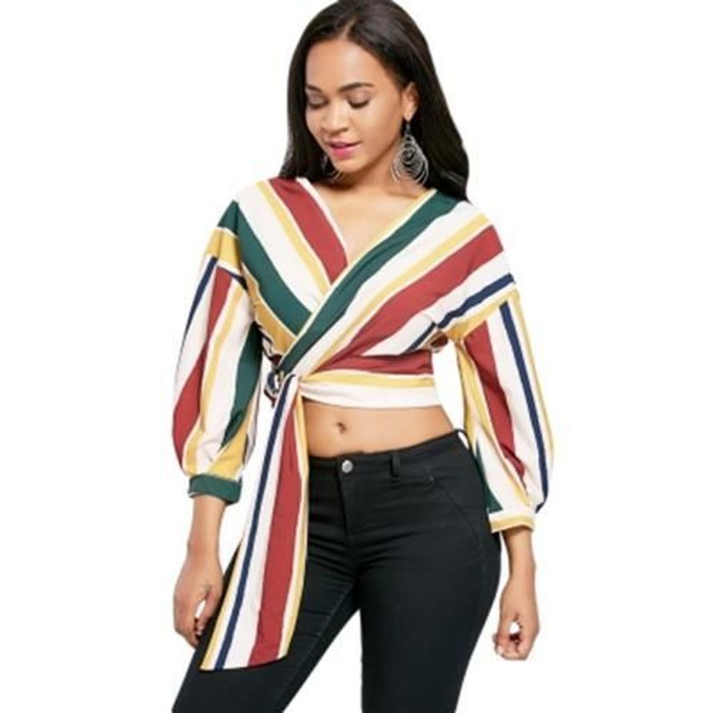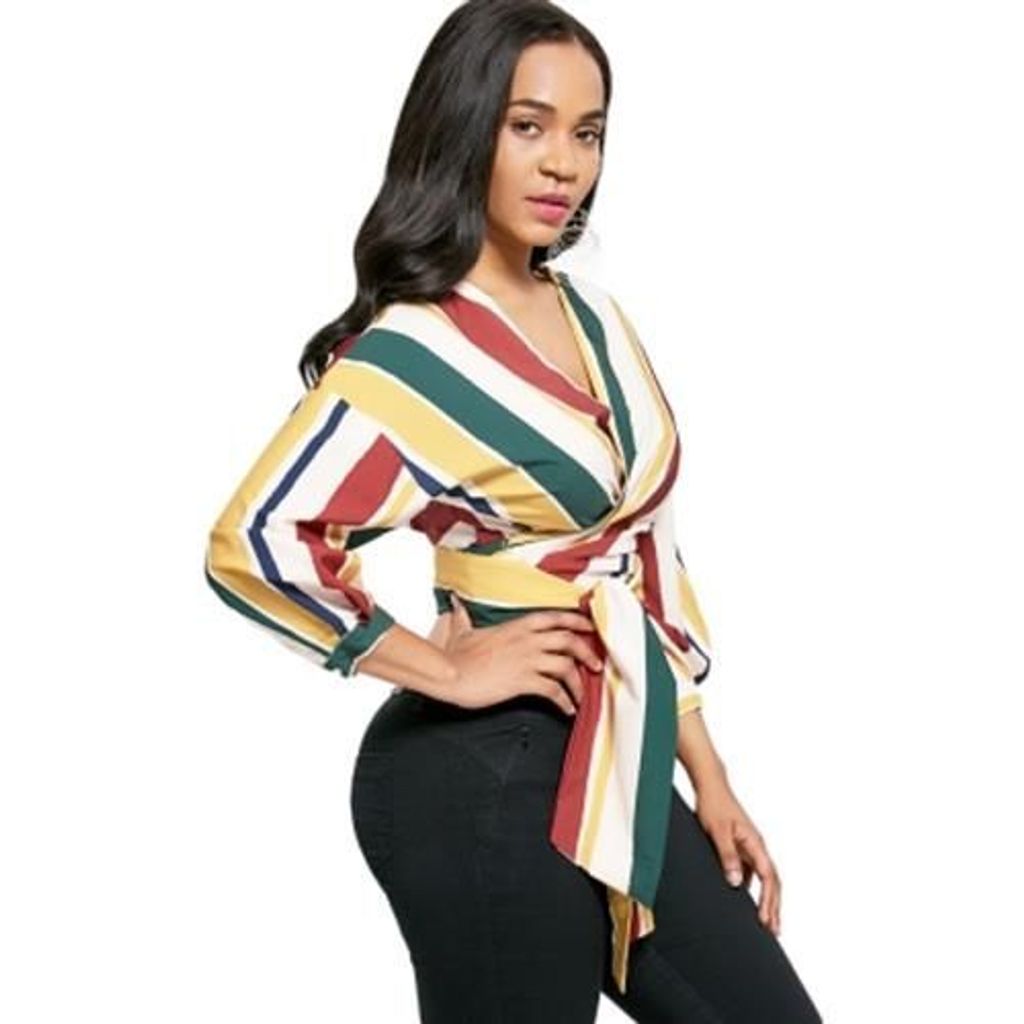 STRIPED WRAP DROP SHOULDER BLOUSE (COLORMIX)