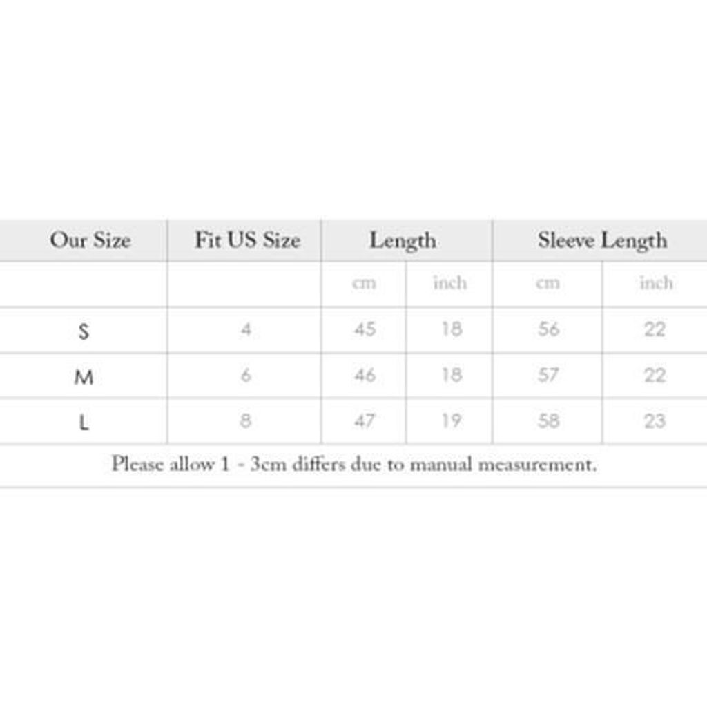 | Our Size | Fit US Size | Length | Sleeve Length | ||