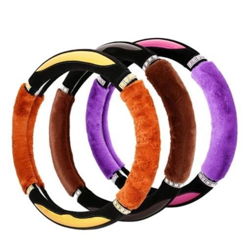 STYLISH RHINESTONE-STUDDED CANDY COLOR LADIES CAR STEERING WHEEL COVER