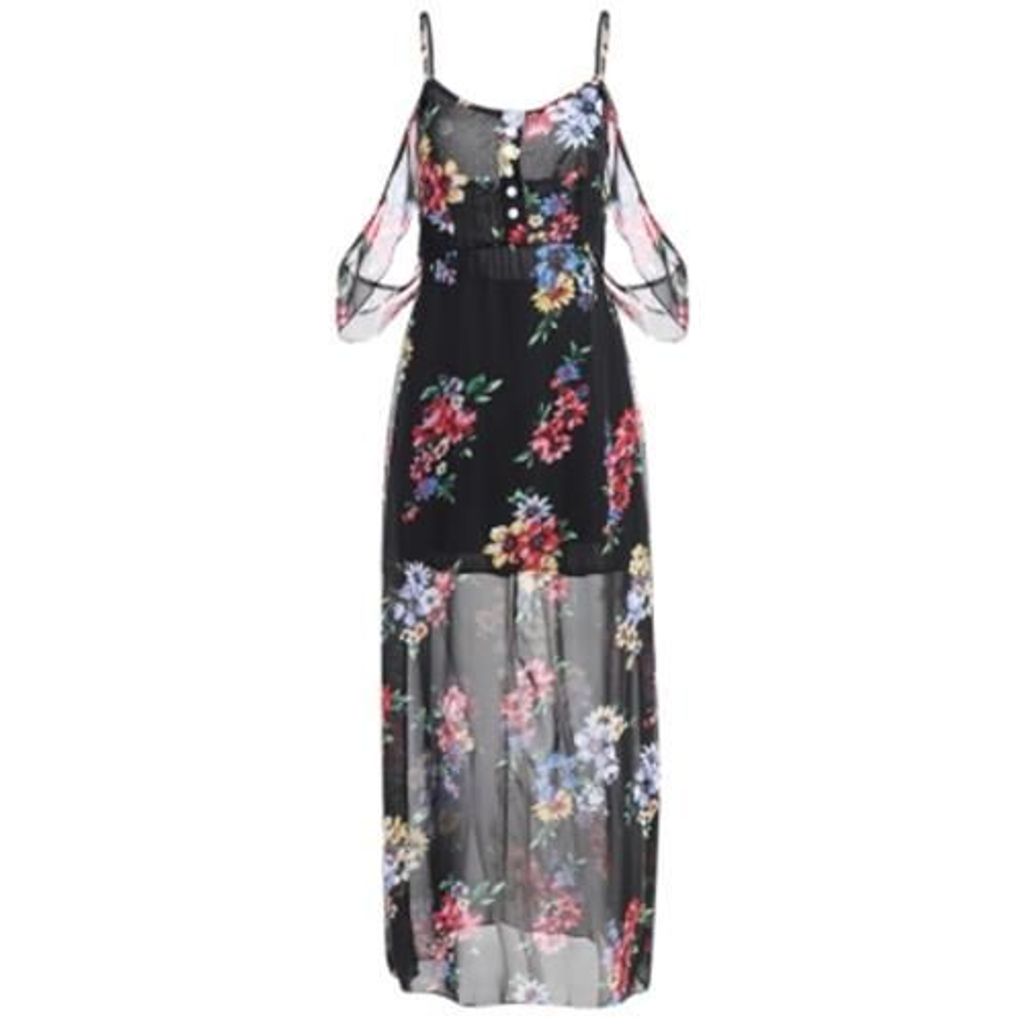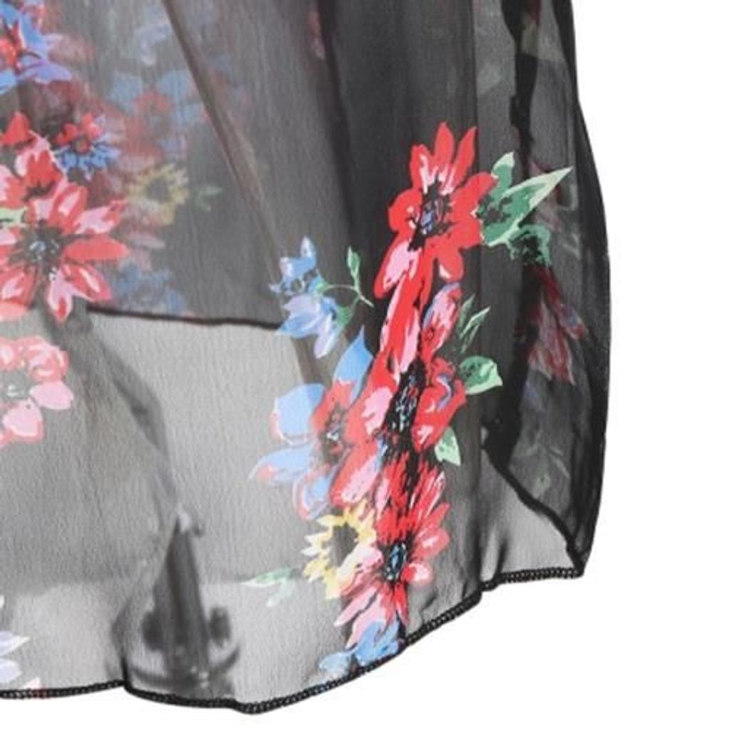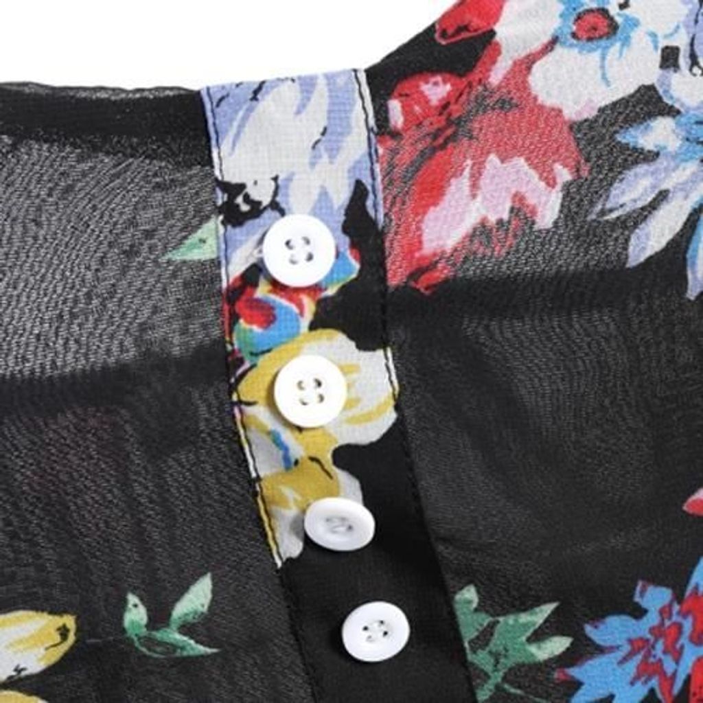A classical floral chiffon dress can shine you in any occasion. Flower pattern on the black dress forms a vintage style. There are buttons decorating on the dress and chiffon material gives a light feeling.