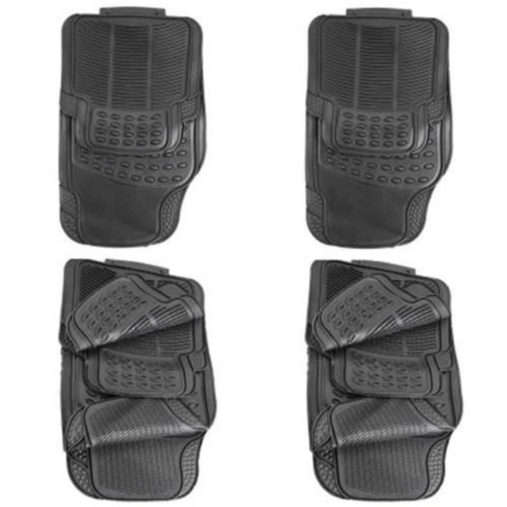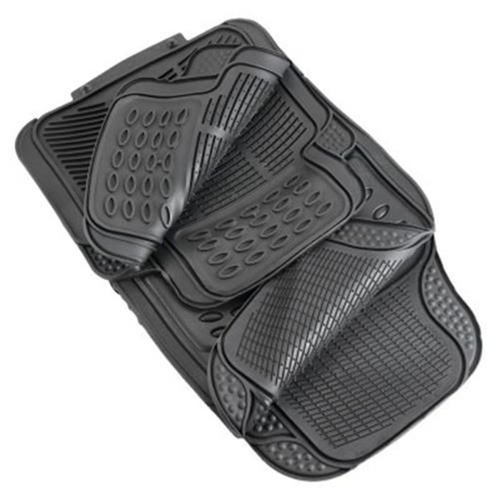 T13115BK 4 PIECE DRIVER PASSENGER SEAT RIDGED WATER-RESISTANT ANTISKID PVC RUBBER FLOOR MAT
