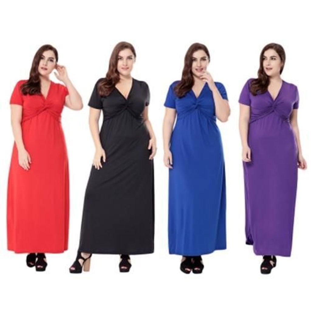 Trendy Plunge Neck Short Sleeve Solid Color Knitted Plus Size Women Maxi Dress