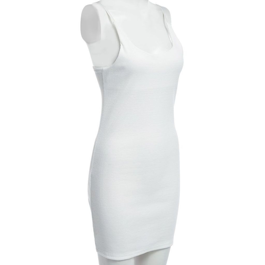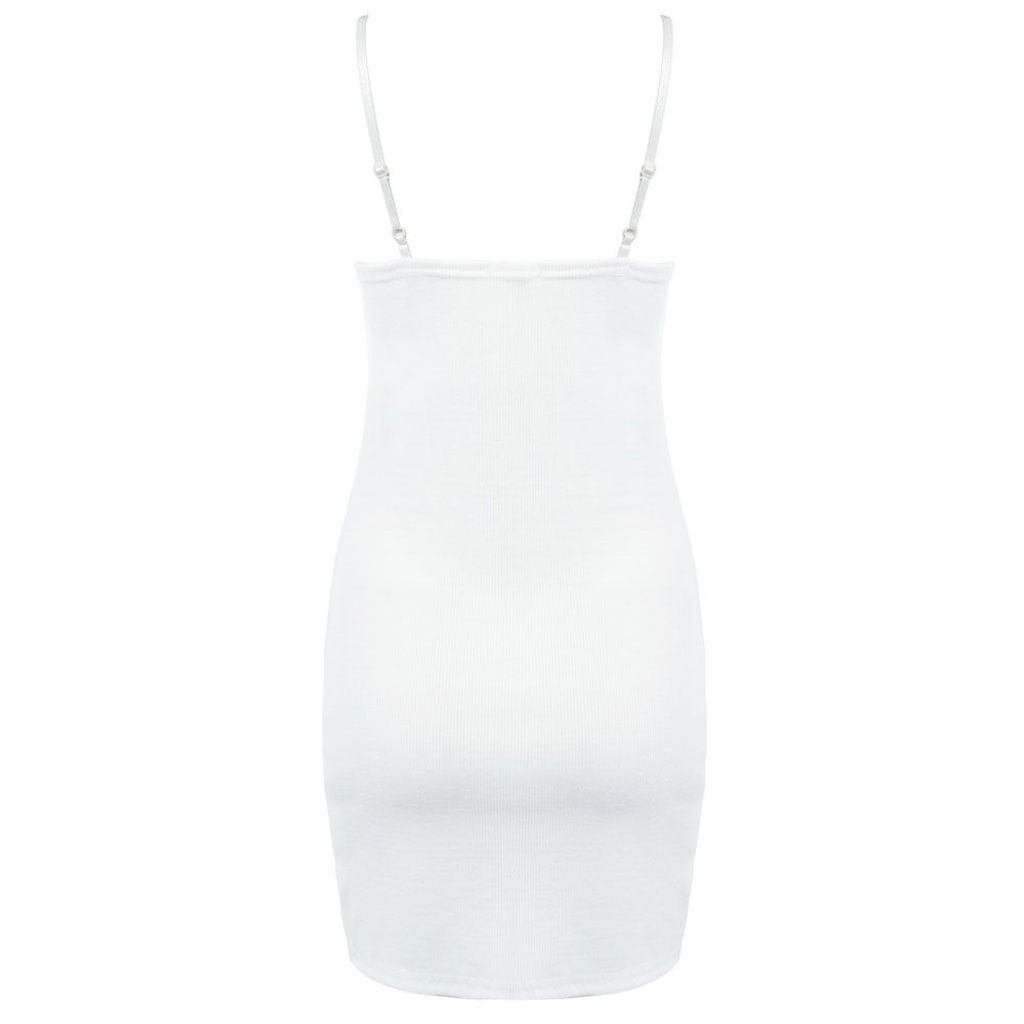 WOMEN SCOOP NECK SUSPENDER WRAPPED HIP SHEATH MINI DRESS (WHITE, SIZE S/M/L/XL/2XL)